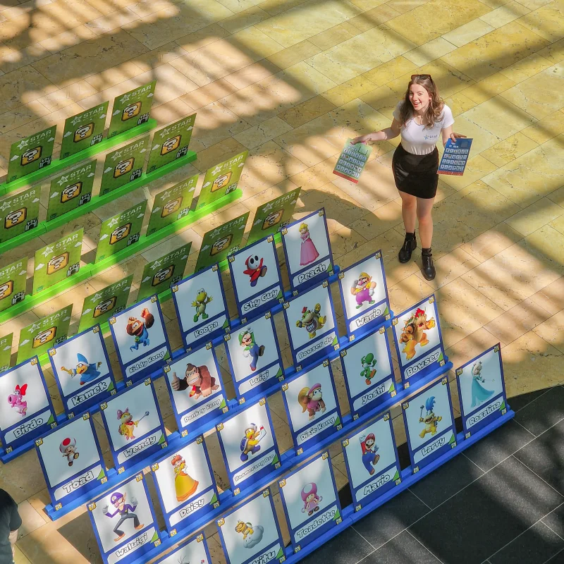 Het spel is volledig aanpasbaar aan jouw thema of gelegenheid. Gebruik Super Mario-personages, sprookjesfiguren, superhelden of zelfs je eigen vrienden, familie of collega’s als personages. Zo creëer je een unieke spelervaring die perfect past bij verjaardagsfeestjes, schoolactiviteiten, communies, teambuilding-evenementen of bedrijfsfeesten.